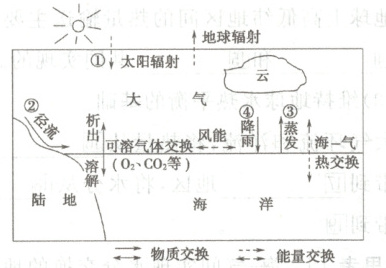 (1)图中表示海 - 气相互作用中水分交换的是(