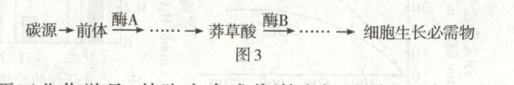 (4)莽草酸是一种重要工业化学品,其胞内合成代谢途径见图3。由于野生型大肠杆菌胞内酶A活性弱,且莽草酸会被快速转化为细胞生长必需物,因此细胞中无法大量积累莽草酸。为了保证细胞正常生长,并在生长稳定期实现莽草酸的大量积累,利用上述两种质粒的调控功能,结合野生型菌株遗传物质的改造,提出重组生产菌株构建思路:_______。