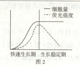 (2)将W1在适宜条件下进行摇瓶培养,定时取样检测培养液中细胞密度,方法有_______(答一种)。接种前需检测液体培养基的荧光强度,其作用是_______。培养结果(图2)表明,进入生长稳定期后荧光强度快速下降,原因是_______。