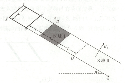 解得释放时pq边与区域Ⅰ上边界的距离$s=\frac{m^{2}gR^{2}\sin\alpha}{2B^{4}L^{4}\cos^{2}\alpha}$。