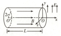 (2)由于电子始终未与筒壁碰撞,则电子投影到$yOz$平面内的圆周运动的最大半径为$r$,由洛伦兹力提供向心力有$ev_{0\max}B =m\frac{v_{0\max}^{2}}{r}$,则$\vert\tan\theta\vert=\frac{v_{0\max}}{v_{0}}=\frac{2\pi r}{L}$。