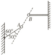 5. 如图,两带电小球的质量均为$m$,小球$A$用一端固定在墙上的绝缘轻绳连接,小球$B$用固定的绝缘轻杆连接。$A$球静止时,轻绳与竖直方向的夹角为$60°$,两球连线与轻绳的夹角为$30°$,整个系统在同一竖直平面内,重力加速度大小为$g$。下列说法正确的是