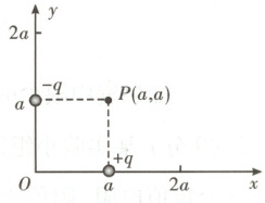 4. 如图,在$(a,0)$位置放置电荷量为$q$的正点电荷,在$(0,a)$位置放置电荷量为$q$的负点电荷,在距$P(a,a)$为$\sqrt{2}a$的某点处放置正点电荷$Q$,使得$P$点的电场强度为零。则$Q$的位置及电荷量分别为