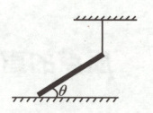 5. [2025·陕西卷,4T,4分] 如图,质量为$m$的均匀钢管,一端支在粗糙水平地面上,另一端被竖直绳悬挂,处于静止状态。钢管与水平地面之间的动摩擦因数为$\mu$、夹角为$\theta$,重力加速度大小为$g$。则地面对钢管左端的摩擦力大小为 (