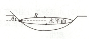 5. [2025·广东卷,8T,6分](多选)将可视为质点的小球沿光滑冰坑内壁推出,使小球在水平面内做匀速圆周运动,如图所示。已知圆周运动半径$R = 0.4 m$,小球所在位置处的切面与水平面夹角$\theta$为$45°$,小球质量为$0.1 kg$,重力加速度$g$取$10 m/s^2$。关于该小球,下列说法正确的有 (