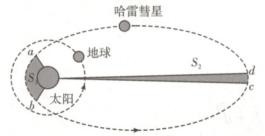 9. [2025·浙江1月卷,6T,3分]地球和哈雷彗星绕太阳运行的轨迹如图所示,彗星从$a$运行到$b$、从$c$运行到$d$的过程中,与太阳连线扫过的面积分别为$S_1$和$S_2$,且$S_1 > S_2$。彗星在近日点与太阳中心的距离约为地球公转轨道半径的0.6倍,则彗星