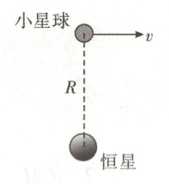 10. [2025·甘肃卷,2T,4分]如图,一小球与某恒星中心距离为$R$时,小球的速度大小为$v$、方向与两者中心连线垂直。恒星的质量为$M$,引力常量为$G$。下列说法正确的是