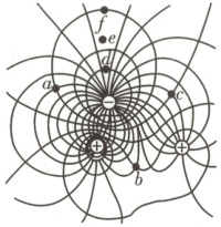 6. [2025·浙江1月卷,4T,3分] 三个点电荷的电场线和等势线如图所示,其中的$d$、$e$与$e$、$f$两点间的距离相等,则(