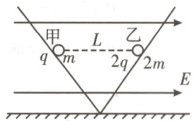 8. [2025·安徽卷,10T,5分](多选)如图,两个倾角相等、底端相连的光滑绝缘轨道被固定在竖直平面内,空间存在平行于该竖直平面水平向右的匀强电场。带正电的甲、乙小球(均可视为质点)在轨道上同一高度保持静止,间距为$L$,甲、乙所带电荷量分别为$q$、$2q$,质量分别为$m$、$2m$,静电力常量为$k$,重力加速度大小为$g$。甲、乙所受静电力的合力大小分别为$F_1$、$F_2$,匀强电场的电场强度大小为$E$,不计空气阻力,则(