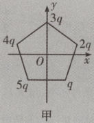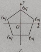 10. [2025·湖北卷,10T,4分](多选)如图所示,在$xOy$平面内有一以$O$点为中心的正五边形,顶点到$O$点的距离为$R$,在正五边形的顶点上顺时针方向依次固定电荷量为$q$、$2q$、$3q$、$4q$、$5q$的正点电荷,且电荷量为$3q$的电荷在$y$轴正半轴上。静电力常量为$k$,则$O$点处的电场强度(