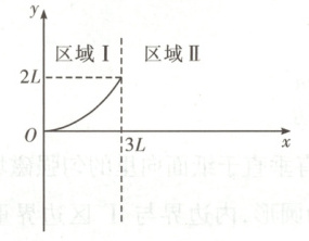 7. [2025·山东卷,12T,4分] (多选) 如图甲所示的 $Oxy$ 平面内,$y$ 轴右侧被直线 $x = 3L$ 分为两个相邻的区域 Ⅰ、Ⅱ。区域 Ⅰ 内充满匀强电场,区域 Ⅱ 内充满垂直 $Oxy$ 平面的匀强磁场,电场和磁场的大小、方向均未知。$t = 0$ 时刻,质量为 $m$、电荷量为 $+q$ 的粒子从 $O$ 点沿 $x$ 轴正向出发,在 $Oxy$ 平面内运动,在区域 Ⅰ 中的运动轨迹是以 $y$ 轴为对称轴的抛物线的一部分,如图甲所示。$t_0$ 时刻粒子第一次到达两区域分界面,在区域 Ⅱ 中运动的 $y-t$ 图像为正弦曲线的一部分,如图乙所示。不计粒子重力。下列说法正确的是