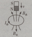 阻碍原磁通量变化 - “增反减同” 如图,磁铁靠近线圈,$B_{感}$与$B_{原}$反向