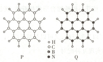 9. 通过理论计算方法优化了 P 和 Q 的分子结构,P 和 Q 呈平面六元并环结构,原子的连接方式如图所示,下列说法错误的是 (