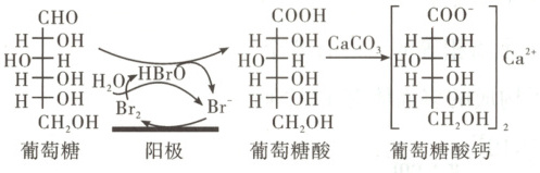 8. 葡萄糖酸钙是一种重要的补钙剂,工业上以葡萄糖、碳酸钙为原料,在溴化钠溶液中采用间接电氧化反应制备葡萄糖酸钙,其阳极区反应过程如下: