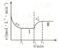 11. 已知:$A(g) + 2B(g) \rightleftharpoons 3C(g)$ $\Delta H<0$,向一恒温恒容的密闭容器中充入 1 mol A 和 3 mol B 发生反应,$t_1$ 时达到平衡状态Ⅰ,在 $t_2$ 时改变某一条件,$t_3$ 时重新达到平衡状态Ⅱ,正反应速率随时间的变化如图所示。下列说法正确的是 (