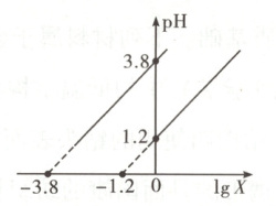 实验 1:向$10 mL 0.2 mol·L^{-1} H_2C_2O_4$溶液中滴入一定量$0.2 mol·L^{-1} KOH$溶液。混合溶液的 pH 与$lgX\left[X = \left[\frac{c(HC_2O_4^-)}{c(H_2C_2O_4)} 或 \frac{c(C_2O_4^{2-})}{c(HC_2O_4^-)}\right]\right.$的关系如图所示。