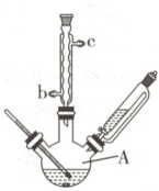Ⅰ.向A中加入3.5 g $\mathrm{NaHCO_{3}}$、5.2 g $\mathrm{Na_{2}SO_{3}}$和20.0 mL蒸馏水,搅拌下逐滴加入2.1 mL(3.3 g)三氟甲磺酰氯($M_{r} = 168.5$),有气泡产生(装置如右图,夹持及加热装置省略)。80 ℃下反应3 h后,减压蒸除溶剂得浅黄色固体。