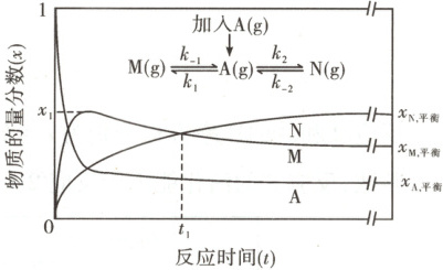 )A.该条件下$\frac{x_{N,平衡}}{x_{M,平衡}} = \frac{k_{−1}k_2}{k_1k_{−2}}$