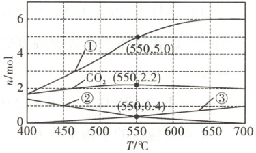 B.$550 ^∘C$反应达平衡状态时,$n(CO_2):n(CO)=11:25$