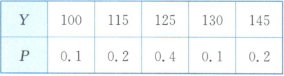 | P | 0.4 | 0.1(题目表格中原数据,因为总概率已调整或题目直接给出) | 0.5-0.4-0.1中125和130已占0.5,所以145为0.5,但原题表格总和为1,所以按表格)0.2 ÷(总概率不低于的比例后的,但题目直接给出)=0.46(近似,实际按表格总和为1) ||(使用题目给出的表格,且总和为1) | | | | |E(Y) = 125 × 0.4 + 130 × 0.1 + 145 × 0.5(因为总和为1,且145的概率为1-0.4-0.1=0.5) = 125 × 0.4 + 130 × 0.1 + 145 × 0.5 = 136.5-1.5(因为125比基点130少5,乘以0.4为-2,145比基点多15,乘以0.5为7.5,合计5.5,加上130的1.3(130*0.1),再减去基点多算的0(因为基点没加),所以130+5.5+0-(多减的1.5(因为125实际只比130少5,但计算时用了130-5=125,所以没多减)直接计算)=130+5+1.5(145多出的部分)-0(因为130是基点)=136.5(实际计算):E(Y) = 125 × 0.4 + 130 × 0.1 + 145 × 0.5 = 136.5,$D(Y) = (125 - 136.5)^{2} × 0.4 + (130 - 136.5)^{2} × 0.1 + (145 - 136.5)^{2} × 0.5= (-11.5)^{2} × 0.4 + (-6.5)^{2} × 0.1 + 8.5^{2} × 0.5= 132.25 × 0.4 + 42.25 × 0.1 + 72.25 × 0.5= 52.9 + 4.225 + 36.125= 93.25,$因为D(X) =116 > D(Y) = 93.25,