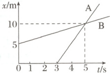 3. 物体A、B的$x-t$图像如图所示,由图可知(