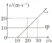 D.在$t = 20\ s$之前,甲比乙运动得快;在$t = 20\ s$之后,乙比甲运动得快