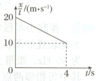 2.D 由题图可得$\frac{x}{t}=-2.5t + 20(m/s),$根据$x = v_0t+\frac{1}{2}at^2,$得$\frac{x}{t}=\frac{1}{2}at + v_0,$对比可得$v_0 = 20m/s,$a = -5m/s²,即动力车的初速度大小为20m/s,刹车过程动力车的加速度大小为5m/s²,故A、B错误;刹车过程持续的时间为$t=\frac{0 - v_0}{a}=\frac{-20}{-5}s = 4s,$故C错误;整个刹车过程动力车经过的位移大小为$x=\frac{v_0}{2}t=\frac{20}{2}×4m = 40m,$故D正确。