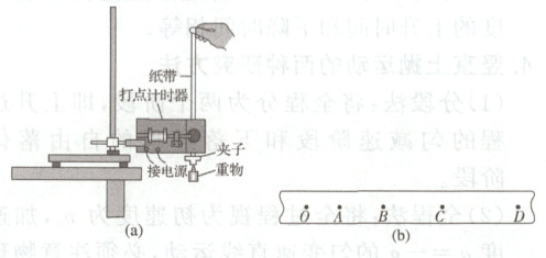 $s$ 打一次点。某同学用打点计时器、重物和纸带做研究重物下落运动的实验,如图(a)所示。选出的一条纸带如图(b)所示,$O$、$A$、$B$、$C$、$D$ 是五个计数点,从 $O$ 开始每隔一个点选一个计数点。用毫米刻度尺测得 $OA = 6.63 cm$,$AB = 8.16 cm$,$BC = 9.7 cm$,$CD = 11.23 cm$。这四个数据中不符合读数要求的是