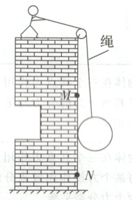 3. 如图所示,随着高层建筑的不断增加,大型的家具或者电器无法通过电梯搬运的时候,工人师傅常常使用定滑轮牵引物体向上运动。假设墙壁光滑,家具或者电器可视为规则的球体,在物体缓慢地从$N$点滑至$M$点的过程中