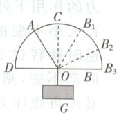 。由图可知,OB绳的B端沿半圆支架从竖直位置