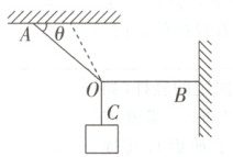 2.如图所示,轻绳$OA$与水平方向成$\theta$角,轻绳$OB$水平,轻绳$OC$系住一个质量为$m$的物体使其处于平衡状态,重力加速度大小为$g$。当轻绳$OA$的悬点缓慢向右移动时,$OB$始终保持水平,在$OA$到达竖直位置前,下列说法不正确的是(