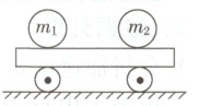 2.如图所示,在一辆表面光滑的小车上,有质量分别为$m_1$和$m_2$的两个小球($m_1$>$m_2$,空气阻力不计)随车一起做匀速直线运动。当车突然停止时,如不考虑其他阻力,设车无限长,则两个小球 (