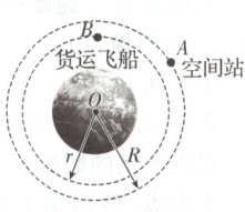 2. 如图所示,“天舟二号”货运飞船与“天和号”空间站在交会对接之前,分别沿半径为 $ r $、$ R $ 的圆形轨道运动。某时刻“天舟二号”货运飞船和“天和号”空间站分别从 $ B $、$ A $ 点开始运动,下列说法正确的是 (