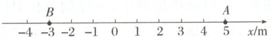 3. 如图所示是为了定量研究物体的位置变化作出的坐标轴($ x $ 轴)。在画该坐标轴时规定原点在某长直公路上某广场的中心,公路为南北走向,规定向北为正方向。坐标轴上有两点 $ A $ 和 $ B $,$ A $ 点的位置坐标为 $ x_A = 5 m $,$ B $ 点的位置坐标为 $ x_B = -3 m $,下列说法中正确的是 (
