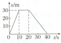 B 由题图可知,$0 \sim 10\ s$,位移逐渐增大,没有向负方向运动,故A错误;在$10 \sim 20\ s$内汽车停在$x = 30\ m$处,汽车没有行驶,故B正确;汽车在$20 \sim 40\ s$内匀速驶向出发点,离出发点最远距离为30m,故C、D错误。