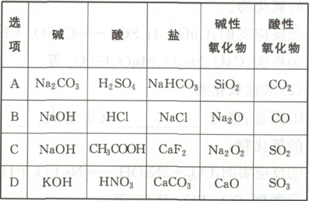 2.D Na₂CO₃不是碱,SiO₂不是碱性氧化物,A不正确;CO