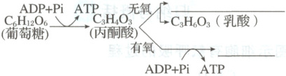 的环境条件。人在剧烈运动时,在较短的时间内会消耗大量的能量,除了有氧呼吸外,肌细胞也能以无氧呼吸的方式,将葡萄糖分解为乳酸