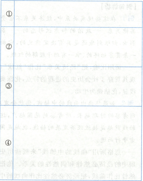 1①“经济关系”的含义是什么? ②它包括哪些方面?③“技术”决定哪些方面? ④正文第一段中作者为什么不把经济关系所包括的方面都写完,再写技术所“决定”的方面呢?完成下表。