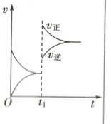 $t_1$时刻,加入催化剂,$v'(正)$、$v'(逆)$同等倍数增大,则$v'(正)=v'(逆)$,平衡