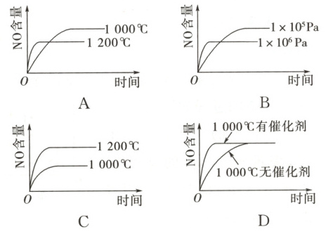1. C [由于该反应的正反应为放热反应,温度升高,平衡逆向移动,NO的含量降低,故A项正确,C项错误;该反应的正反应是气体体积增大的反应,压强减小,平衡正向移动,NO的含量增大,故B项正确;催化剂的使用只能改变反应速率,不能使平衡发生移动,NO的含量不变,故D项正确。]