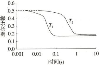 4. B [由图可知,$T_{1}$比$T_{2}$反应速率大,则$T_{1}>T_{2}$;$T_{1}$温度下达到平衡时反应物的摩尔分数低于$T_{2}$温度下平衡时反应物的摩尔分数;由于起始${CO_{2}}$与${H_{2}}$的物质的量之比为$1:1$,则达到平衡时${CO_{2}}$和${H_{2}}$的摩尔分数相等。