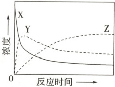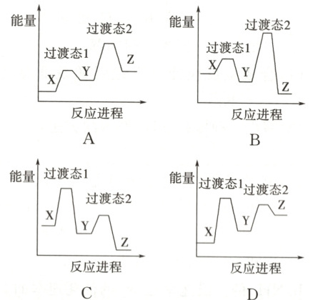 1. B [由图可知,反应初期随着时间的推移X的浓度逐渐减小、Y和Z的浓度逐渐增大,后来随着时间的推移X和Y的浓度逐渐减小、Z的浓度继续逐渐增大,说明${X(g)⇌ Y(g)}$的反应速率大于${Y(g)⇌ Z(g)}$的反应速率,则反应${X(g)⇌ Y(g)}$的活化能小于反应${Y(g)⇌ Z(g)}$的活化能。${X(g)⇌ Y(g)}$和${Y(g)⇌ Z(g)}$的$\Delta H$都小于0,而图像显示,${X(g)⇌ Y(g)}$和${Y(g)⇌ Z(g)}$的$\Delta H$都大于0,A项不符合题意;图像显示${X(g)⇌ Y(g)}$和${Y(g)⇌ Z(g)}$的$\Delta H$都小于0,且${X(g)⇌ Y(g)}$的活化能小于${Y(g)⇌ Z(g)}$的活化能,B项符合题意;图像显示${X(g)⇌ Y(g)}$和${Y(g)⇌ Z(g)}$的$\Delta H$都小于0,但图像上${X(g)⇌ Y(g)}$的活化能大于${Y(g)⇌ Z(g)}$的活化能,C项不符合题意;图像显示${X(g)⇌ Y(g)}$和${Y(g)⇌ Z(g)}$的$\Delta H$都大于0,且${X(g)⇌ Y(g)}$的活化能大于${Y(g)⇌ Z(g)}$的活化能,D项不符合题意。]