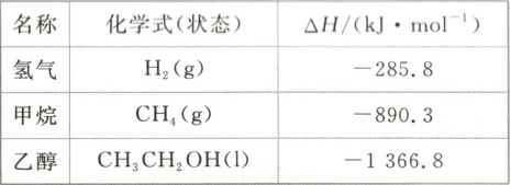 (2)根据燃烧热数据进行计算,在25℃和101 kPa时,质量均为1 g的氢气、甲烷和乙醇完全燃烧时所放出的热量分别为142.9 kJ、55.6 kJ和29.7 kJ。相同质量的上述三种物质,氢气完全燃烧放出的热量最多,且氢气的燃烧产物无污染。