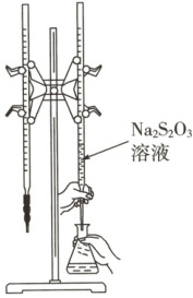 1. B $\left \lbrack $溶液中有单质碘,应加入淀粉溶液作指示剂,碘与硫代硫酸钠发生氧化还原反应,当反应到达终点时,单质碘消失,蓝色褪去,A 错误;${Na_{2}S_{2}O_{3}}$ 中硫元素化合价升高被氧化,作还原剂,B 正确;${Na_{2}S_{2}O_{3}}$ 溶液显碱性,应该用碱式滴定管盛装,C 错误;反应中每消耗 $2\ {mol}\ {Na_{2}S_{2}O_{3}}$,电子转移数为 $2N_{A}$,D 错误。$\right \rbrack $