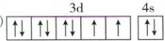 (2)3d:↑↓ ↑↓ ↑↓ ↑ ↑ 4s:↑↓;