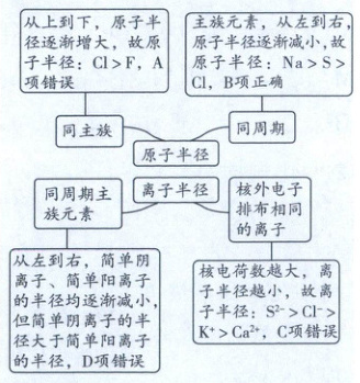 主族元素,从左到右,原子半径逐渐减小,故原子半径:Na>S>Cl,B项正确