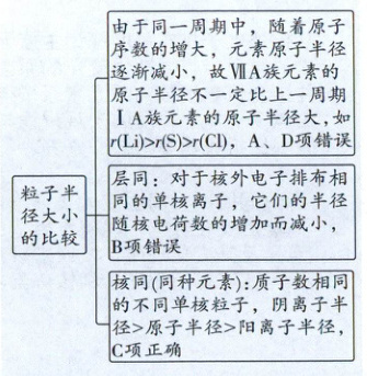 从左到右,简单阴离子、简单阳离子的半径均逐渐减小,但简单阴离子的半径大于简单阳离子的半径,D项错误