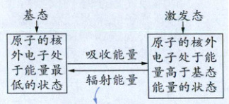 B.原子的核外电子吸收能量而高于基态能量的状态称为激发态