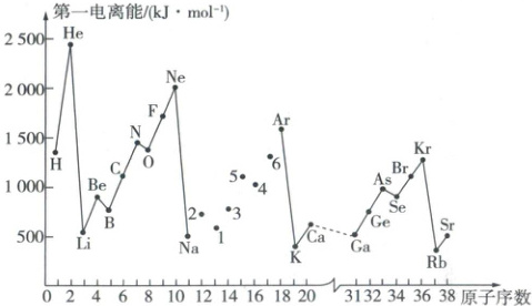 (1)一般,元素金属性越强,越容易失去电子,元素的第一电离能越小,则题图中第一电离能最小的元素是Rb;每个周期中稀有气体元素的第一电离能最大,0族元素从上到下,第一电离能逐渐减小,则题图中第一电离能最大的元素是He。