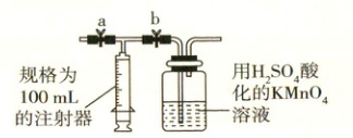 ④打开,关闭,用注射器抽取新装修的室内空气。关闭,打开,再缓缓推动注射器,将气体全部推入酸性高锰酸钾溶液中,使其充分反应。再如此重复次(共次)。如果推送气体时速度过快,可能会产生什么不利后果?_____